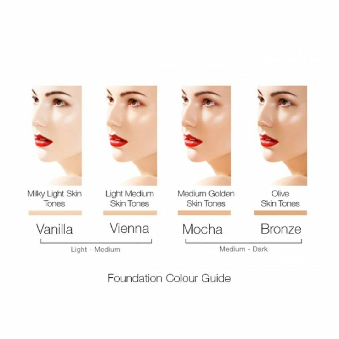 - A special film forming barrier protects skin from dehydration and allows the foundation to stay true to color all day long.